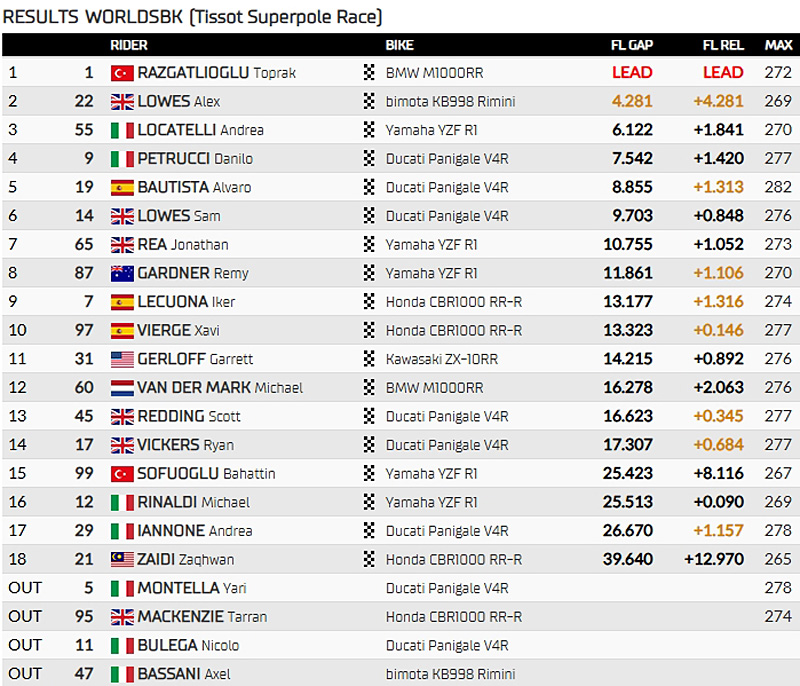 WSBK Superbike Misano Course Superpole : Axel Bassani fauche Nicolo Bulega. Toprak facile dans le Sprint !