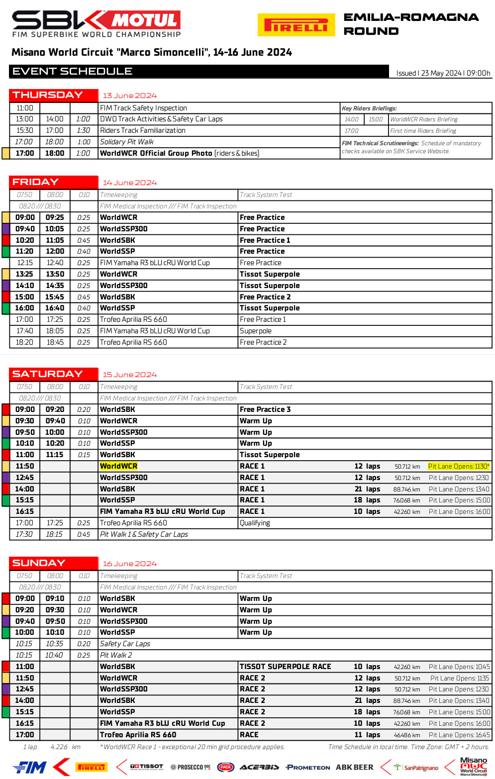 De plus, une nouveauté significative est la participation de Michele Pirro au Pirelli Emilia Romagna Round au guidon de la Ducati Panigale V4R officielle. Après avoir défendu les couleurs d’Aruba.it Racing en MotoGP ces deux dernières années en tant que Wild Card sur cinq manches, le pilote de San Giovanni Rotondo courra désormais avec la livrée des machines de l’équipe Aruba.it Racing – Ducati.
