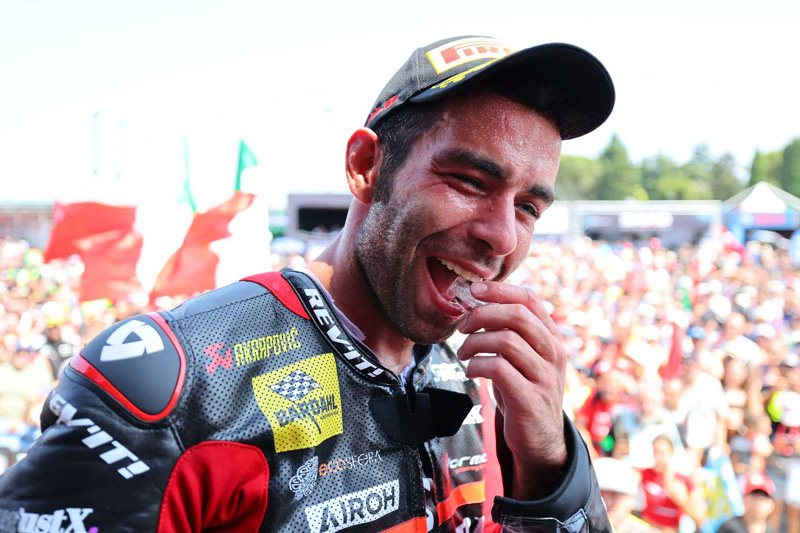 P3 – Danilo Petrucci (Barni Spark Racing Team) : « Ça a été vraiment très difficile. Je suis parti de la troisième ligne et à un moment donné, j’ai pris un gros coup au bras, je ne sais même pas qui c’était, mais j’ai réussi à remonter en troisième position et après ça, j’ai essayé d’attaquer. Honnêtement, je n’ai même pas pu attaquer aussi fort que je le voulais parce que je me concentrais sur la gestion de la traction arrière. Ça a été une course difficile parce qu’il fallait garder l’adhérence avant pendant toute la course. Alex a fait un excellent travail et a essayé de me dépasser. Je pensais avoir encore un peu de marge. C’était difficile et j’attendais le dernier tour comme si c’était mon anniversaire ! »