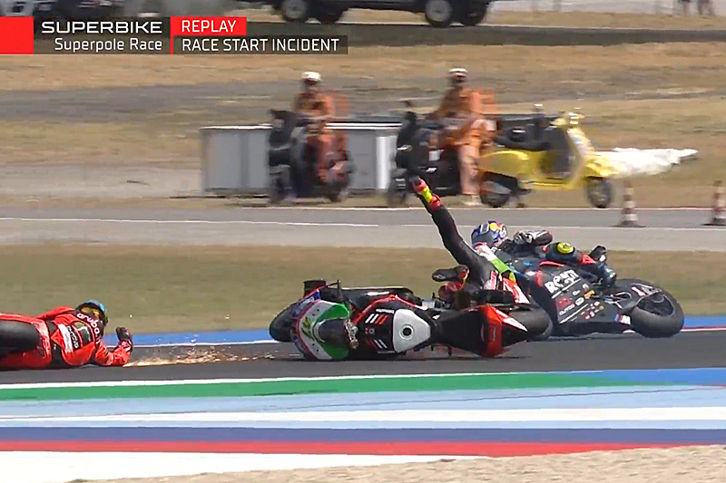 Lors de la course Superpole de la sixième manche du Championnat du monde Superbike à Misano, un incident est survenu au premier freinage du tour entre Axel Bassani et Nicolo Bulega, avec pour résultat l’abandon des deux pilotes.
