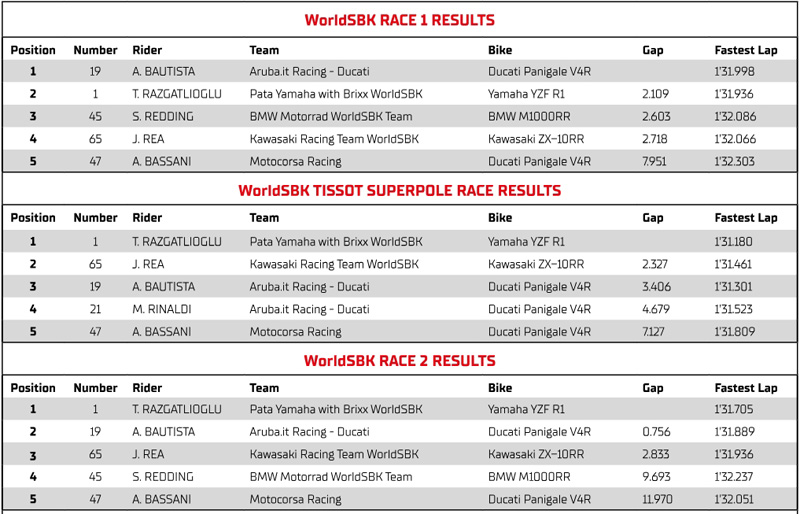 A noter aussi l’absence de Bradley Ray (Yamaha Motoxracing WorldSBK), 6e à Imola, afin de subir une opération chirurgicale à l’épaule droite ce mercredi 26 juillet.