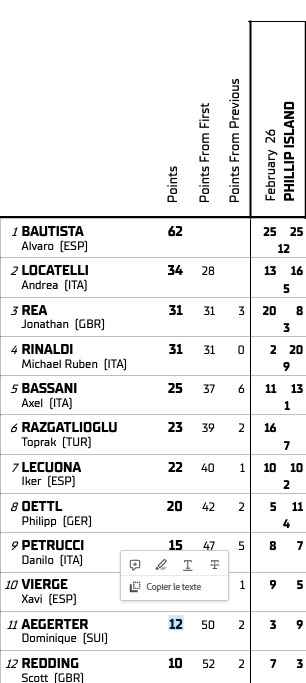 Certes, Andrea Locatelli (Pata Yamaha Prometeon WorldSBK) n’a fait que frôler une perfection que Michael Rinaldi (Aruba.it Racing – Ducati) a atteinte dans son rôle de coéquipier, mais le pilote italien du team Yamaha WorldSBK repart carrément d’Australie en 2e position du classement général du Championnat du monde FIM Superbike !