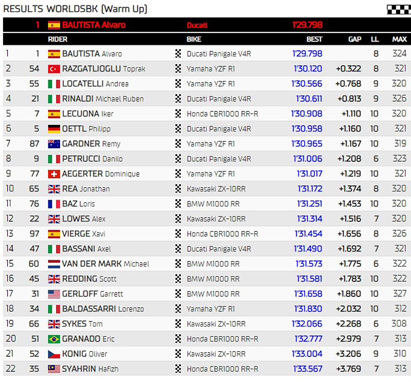 WSBK Superbike Phillip Island Warmup : classement