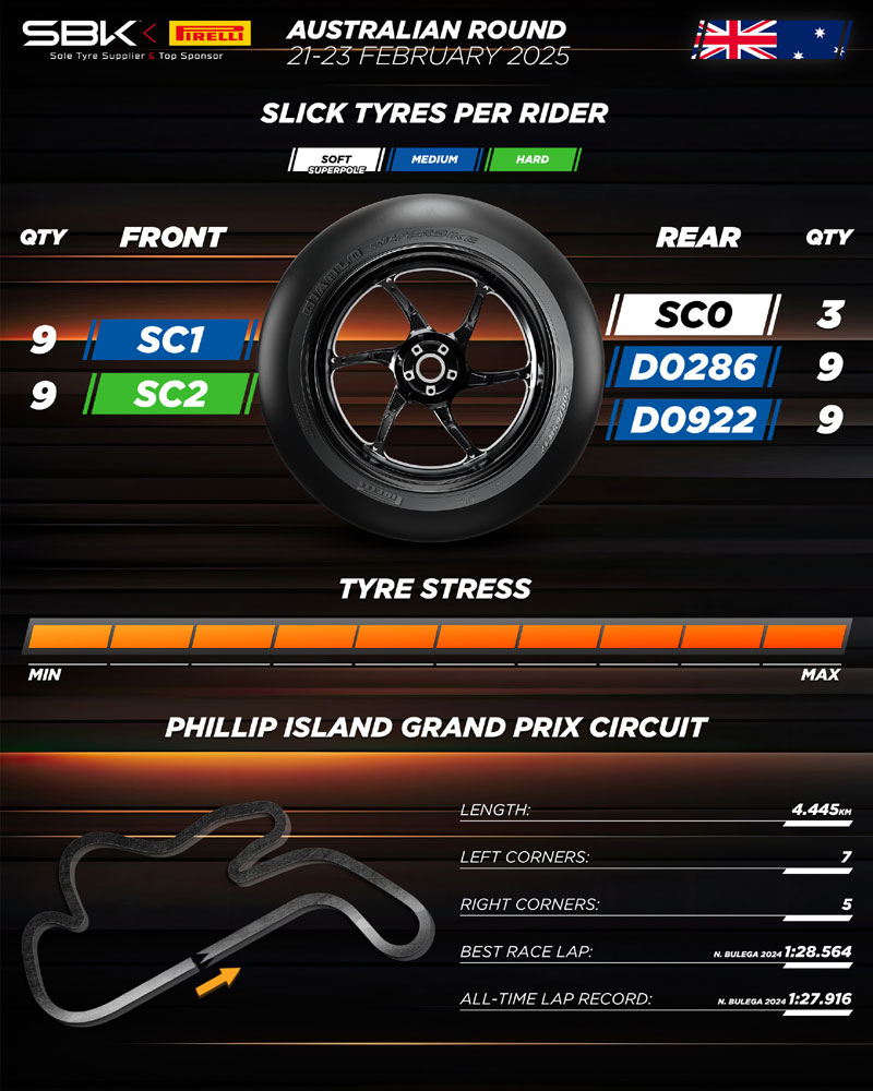 Pirelli confirme pour les courses les solutions utilisées avec d’excellents résultats lors des deux jours d’essais de pré-saison à Phillip Island, en Australie, dominés par Nicolò Bulega en WorldSBK et Bo Bendsneyder en WorldSSP.
