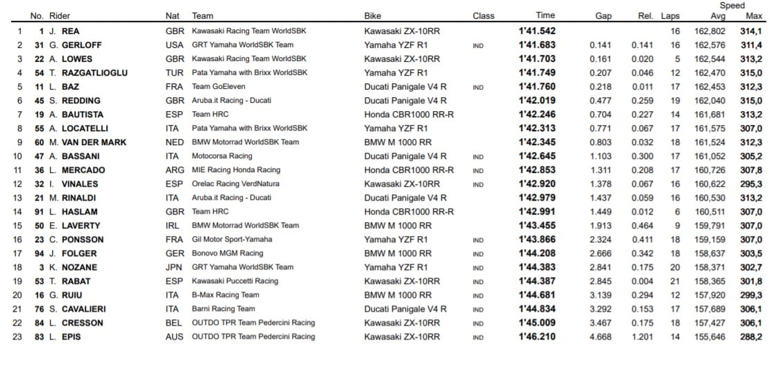 | Superpole | 1’40.676 Jonathan Rea | |