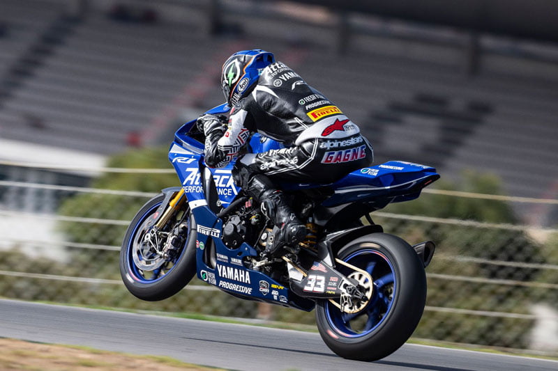 Jake Gagné et son équipe Attack Performance Yamaha se sont rendus au Portugal quelques semaines seulement après avoir remporté un deuxième championnat MotoAmerica Superbike consécutif au guidon de sa R1 Fresh N Lean Progressive Yamaha Racing. A l’image de Cameron Beaubier précédemment, le Californien a fait figure d’épouvantail de la catégorie aux USA, alignant pas moins de 17 victoires en 2021, dont 16 consécutives lors des 20 épreuves, et parvenant à repousser les attaques vigoureuses de Danilo Petrucci en 2022.