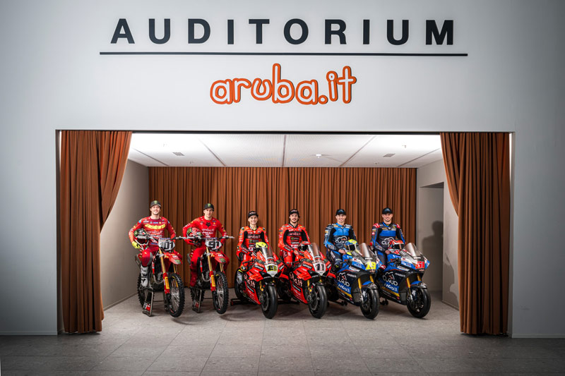 Ce fut un événement sans précédent au cours duquel, en plus des livrées des Ducati Panigale V4R d’Alvaro Bautista et Nicolò Bulega, ont également été dévoilées celles des deux Ducati V21L de l’équipe Aruba Cloud MotoE et de la toute nouvelle Ducati Desmo450 MX de l’équipe Aruba.it – Ducati Factory MX dont Aruba est le sponsor titre dans la première participation historique de l’usine de Borgo Panigale au Championnat du Monde de Motocross MXGP.