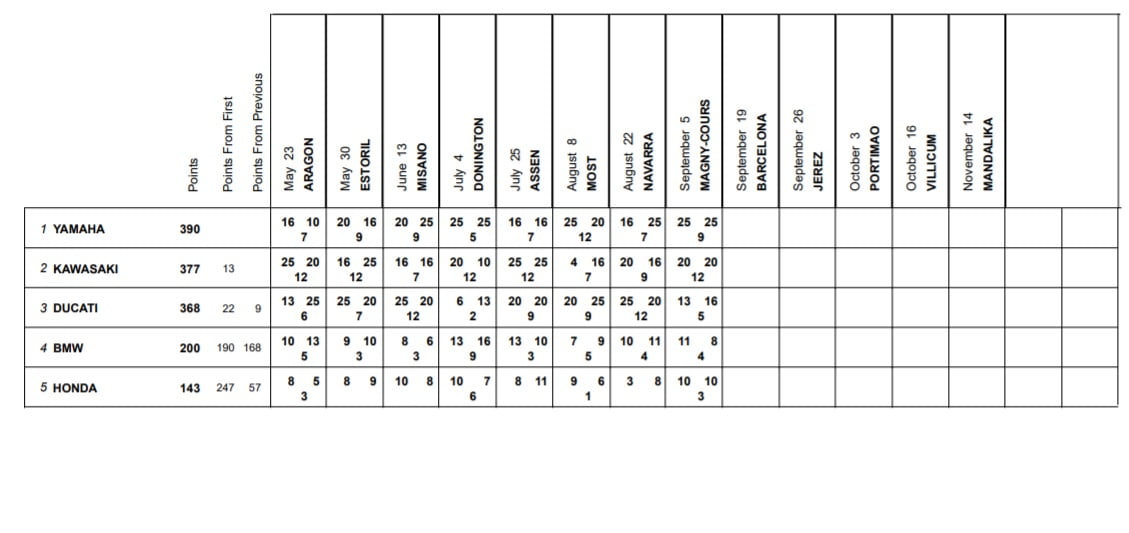 Un point positif doit tout de même être souligné : le circuit de Montmeló a été le théâtre, courant août, d’essais qui ont permis à Kawasaki d’améliorer le comportement parfois erratique de la Ninja lors des fortes chaleurs. « Nous avons mené de bons tests il y a quelques semaines là-bas, dans des conditions très chaudes, et nous avons eu l’occasion de régler quelques problèmes que nous avions lorsque les températures sont élevées », confirme Rea, qui ne perd en aucun cas son enthousiasme. « J’espère que nous serons encore dans le coup pour nous battre pour la victoire, c’est en tout cas le plan. »