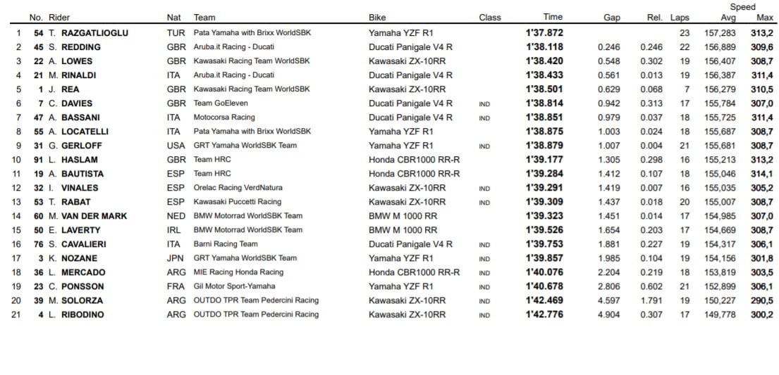 | Course Superpole | Rea, Bautista, Razgatlıoğlu | |