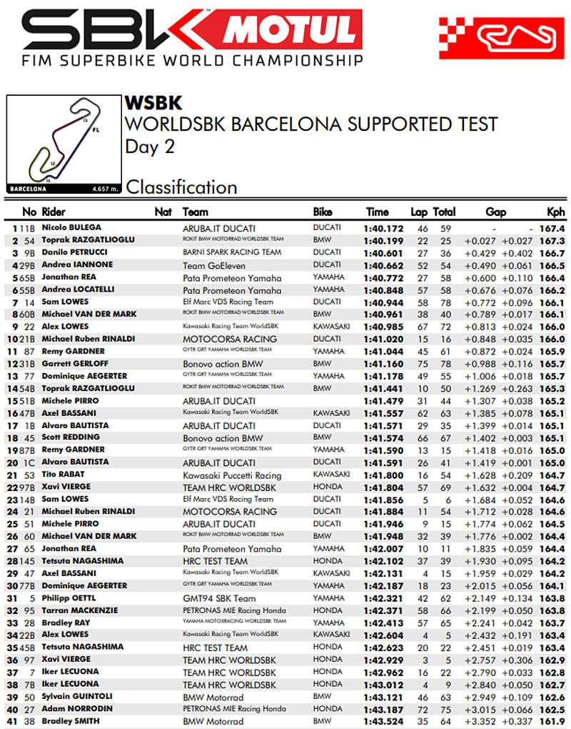 Toprak Razgatlioglu s’est également dit étonné sur Speedweek par la performance de Bulega, le rookie sensationnel et déjà vainqueur à Phillip Island : « quand j’ai débuté en Superbike, j’avais peu d’expérience. J’avais roulé en Superstock 600 et 1000, et j’étais sur une Kawasaki, pas une Ducati. Bulega est dans une position enviable, c’est très rapide. Avec une autre moto, ce ne serait pas si simple, mais sur une Ducati, c’est impressionnant. Rinaldi était sur cette moto depuis des années et il est déjà très rapide. Je suis content d’avoir un autre compétiteur de ce niveau pour me challenger. »