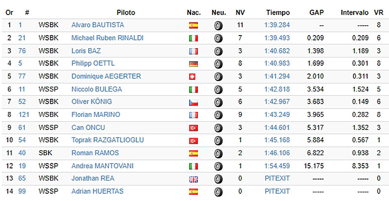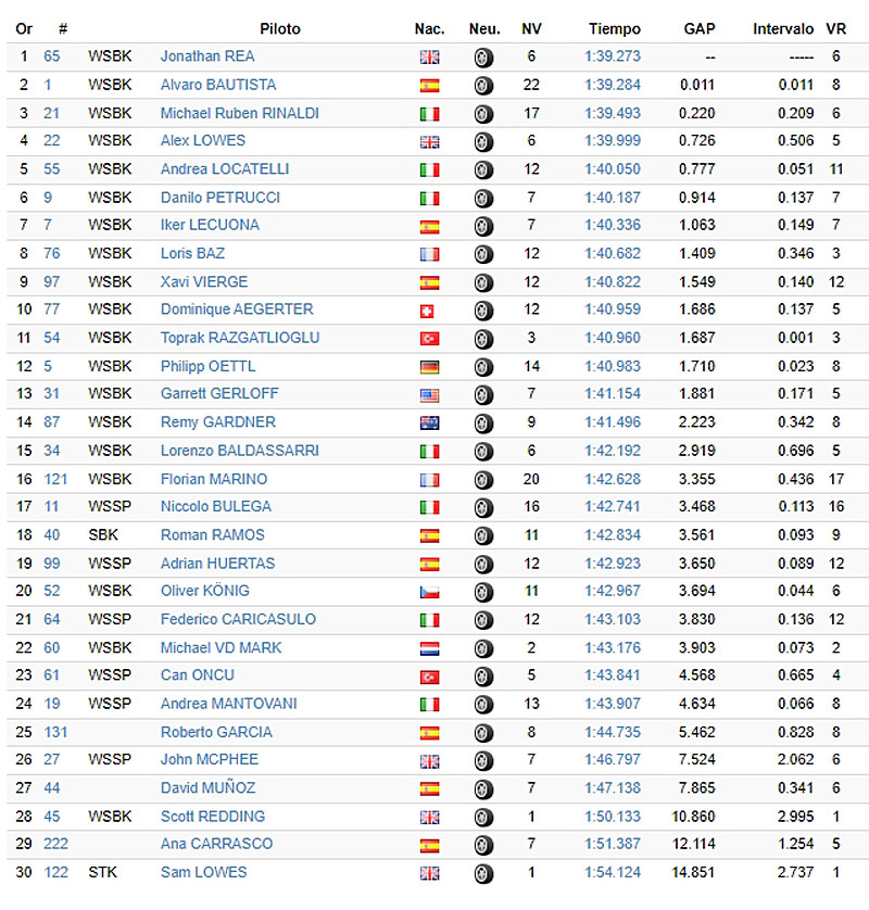 Un peu après midi, Jonathan Rea a pris la tête des opérations en 1’39.273 pour 11 millièmes devant Álvaro Bautista.