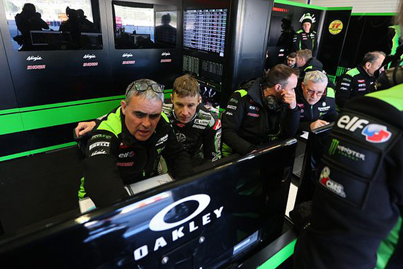 En conséquence, il a fallu attendre 11h20 pour voir une première moto en piste, et comme hier, c’est Álvaro Bautista qui est sorti le premier pour effectuer quelques tours en 1’40.166 en compagnie de Florian Marino qui joue le rôle de pilote d’essai pour le team officiel Kawasaki, en plus de conseiller Alex Lowes.