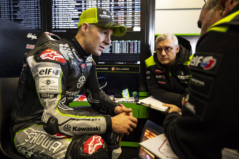 « Notre priorité était en fait d’apprendre à nous connaître et de trouver le bon amalgame avec tous les nouveaux membres de l’équipe. Je me suis vraiment bien entendu avec mon nouveau technicien électronique, Sander. Nous avons également Christophe qui arrive avec beaucoup d’expérience. Donc le premier jour était plus une question de compréhension et de communication, comment ils ont adapté le setup à mes demandes et comment je leur fais mes commentaires. J’ai été agréablement surpris par les idées que la nouvelle électronique a apportées. Ce n’est qu’une première étape mais ils ont eu de très bonnes idées. Chez Kawasaki, nous étions peut-être attachés à certains aspects depuis longtemps et le fait de s’ouvrir à de nouvelles dynamiques est très intéressant. En fait, nous avons fait plusieurs pas en avant, en travaillant sur la suspension, ainsi que sur l’équilibre et l’électronique. Du côté du châssis, nous avions quelques éléments à tester de Showa, des choses que nous devions reconfirmer de l’année dernière. Nous avons été en mesure de faire notre travail. Nous avons également essayé quelques options de développement de pneus avant de Pirelli mais je n’ai pas trouvé une bonne confiance avec l’un d’eux. La deuxième solution, en revanche, a donné de très bons résultats, tandis que je n’ai pas essayé le pneu de développement arrière. Je le ferai à Portimão. Nous avons ensuite effectué un travail de comparaison entre les deux motos à notre disposition, et nous avons finalement pu confirmer ce que nous avions fait. »