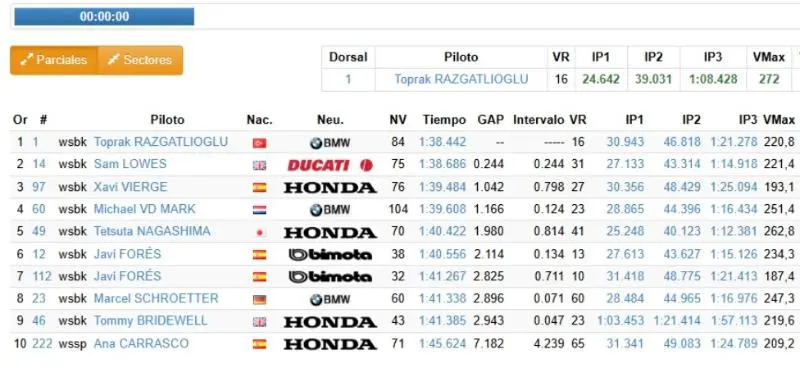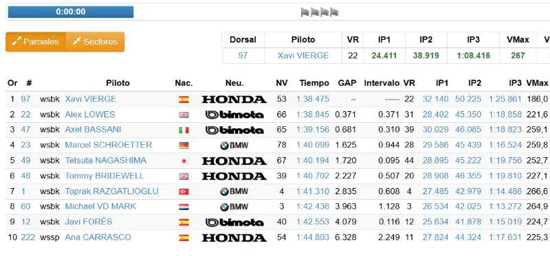 Le deuxième meilleur temps a été signé par Xavi Vierge sur Honda. Le pilote espagnol, toujours sans selle pour 2026, a été le plus rapide du deuxième jour : 1’38.475. Il a bouclé 76 tours mardi et 53 autres aujourd’hui. L’équipe HRC s’est arrêtée en milieu de journée, après avoir terminé ses travaux. Il est à noter que Vierge et Razgatlioglu ont tous deux réalisé un meilleur temps inférieur au record de course (1’38.528) établi par Bulega lors de la Superpole 2024. Le meilleur temps général, cependant, est de 1’37.596, également réalisé par le pilote Ducati lors de la Superpole 2024.