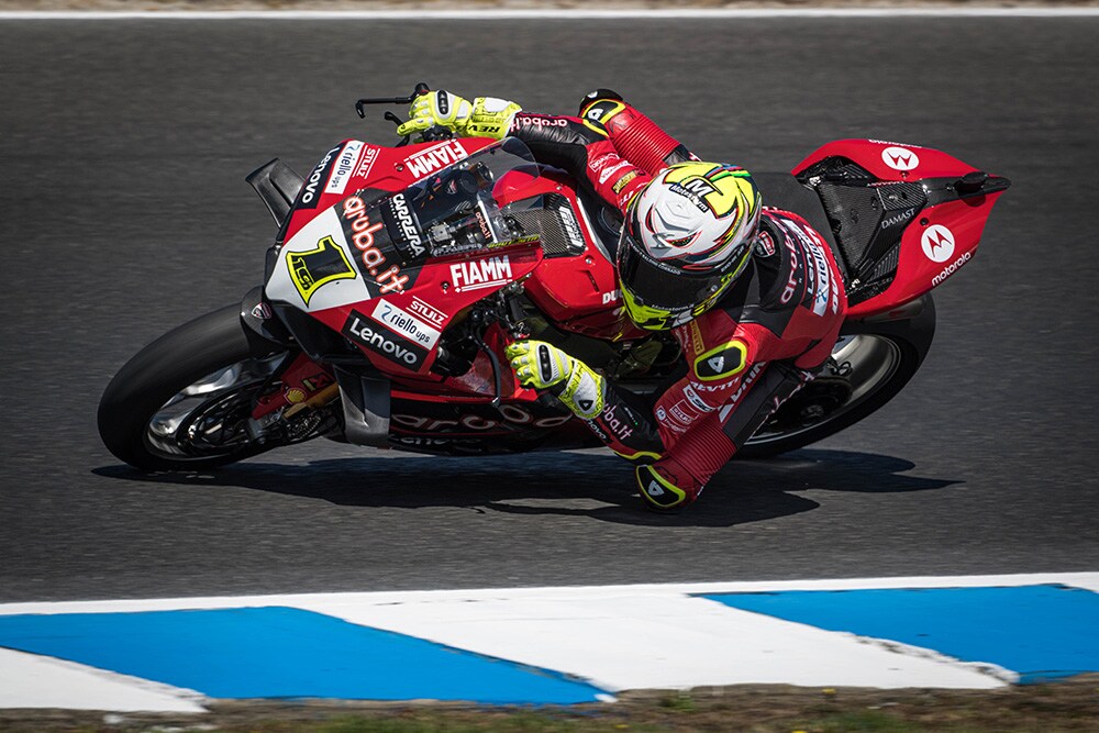 Tout comme plus tard les deux autres volets du célèbre triptyque au virage n°4 lors de la FP2, Álvaro Bautista (Aruba.it Racing – Ducati) et Jonathan Rea (Kawasaki Racing Team WorldSBK), le pilote Yamaha n’a pas échappé à la chute sans gravité au virage n°10 en FP1, mais il a conclu les deux séances en 1’30.674, soit 99 millièmes devant Michael Ruben Rinaldi (Aruba.it Racing – Ducati) toujours en bonne forme cet hiver.