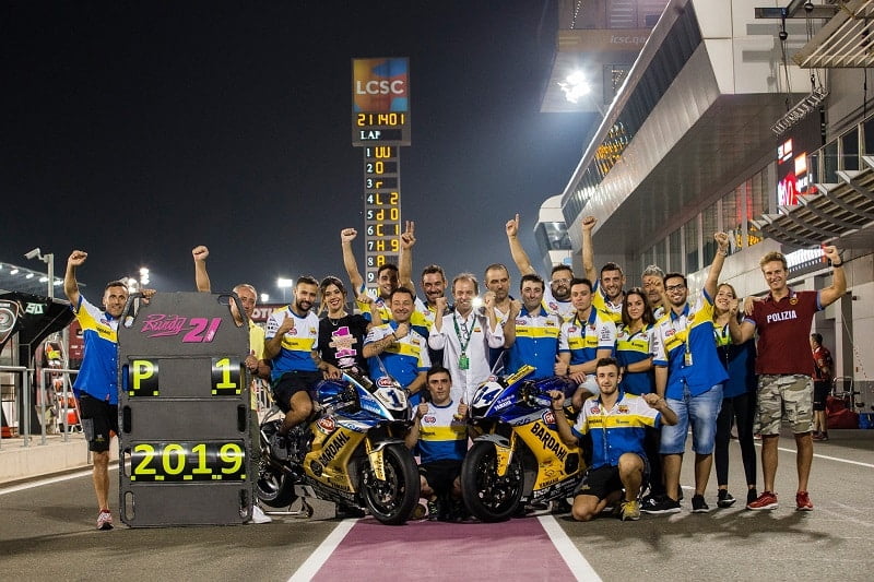 L’équipe Bardahl Evan Bros lors du sacre de Randy Krummenacher au Qatar