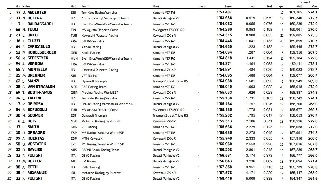 WSBK Supersport Aragón FP2 : Aegerter persiste et signe !
