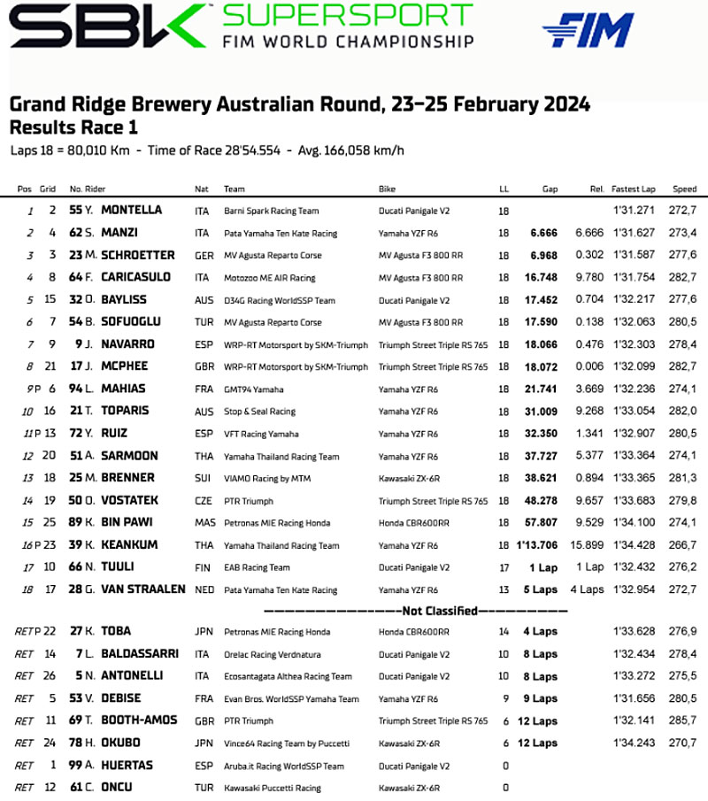 Après s’être élancé depuis la 2e position acquise en Superpole, Yari Montella (Barni Spark Racing Team) débute le championnat de Supersport 2024 par un sans-faute en s’adjugeant la victoire sur le tracé de Phillip Island.