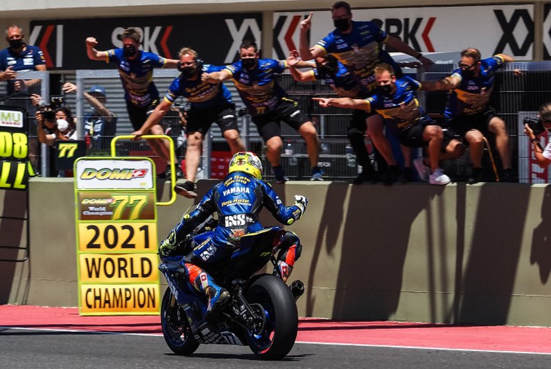 Éric de Seynes : « Oui, extrêmement faste ! Quand tu fais le total de ce que nous avons pu gagner en 2021, c’est assez large et cela touche toutes les disciplines que cela soit en France évidemment mais aussi au niveau mondial avec les couronnes obtenues en MX2 avec Maxime Renaux, Supersport 600 avec Dominique Aegerter, Superbike 1000 avec Toprak Razgatioğllu, Endurance et évidemment le MotoGP avec Fabio Quartararo. Ce qui me fait vraiment plaisir, c’est que toutes ces victoires ont été obtenues au plus haut niveau mondial, comme au niveau des championnats nationaux dont certains sont illustres comme le MX aux États-Unis avec Dylan Ferrandis, le BSB avec Tarran MacKenzie ou le SBK japonais avec Nakasuga.