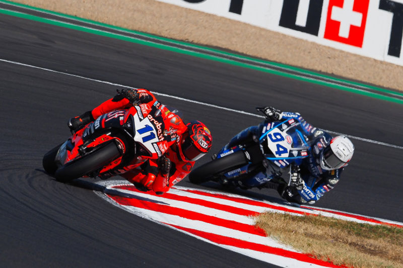 Samedi 8 septembre : Nicolò Bulega dix sur dix avec les honneurs, Stefano Manzi ne passe pas. Le pilote romagnol progresse chez et pour Ducati : il remporte la course 1 à Magny Cours et se rapproche du Championnat du Monde Supersport.