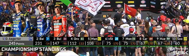 Certes, la méthode est pour le moins contestable et le pilote suisse est maintenant accusé de simulation, mais le résultat est là : Le leader du championnat du monde ne défendra pas ses chances en République Tchèque et Lorenzo Baldassarri (Evan Bros. WorldSSP Yamaha Team) a pris sa place sur la plus haute marche du podium pour la deuxième fois cette année. Il a également réalisé le meilleur temps du warm up ce matin et endosse donc avec une certaine prestance l’habit d’épouvantail du pilote suisse qui a d’autres soucis aujourd’hui.