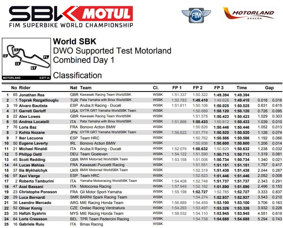 La première des journées d’essais officiels du WorldSBK s’est déroulée sur le circuit Motorland Aragón et entend établir une première hiérarchie toute aussi officielle après les divers tests privés. Mais ça ne va pas être chose facile…