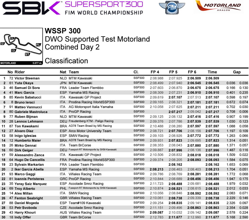 Résultats Supersport 300 :