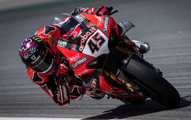 Au terme de la première journée de ces deux jours de test sur le circuit de Catalunya–Barcelona, l’électron libre et néanmoins pilote officiel Ducati, Scott Redding, aurait toutes les raisons de se laisser aller à une certaine exubérance, comme il le fait souvent dans ses vidéos diffusées sur Instagram : il a en effet réalisé un travail plus que solide, avec deux longs runs sur une piste à 46°, et obtenu en prime le meilleur temps de la journée, malgré une attaque de dernière minute du champion du monde en titre Jonathan Rea.