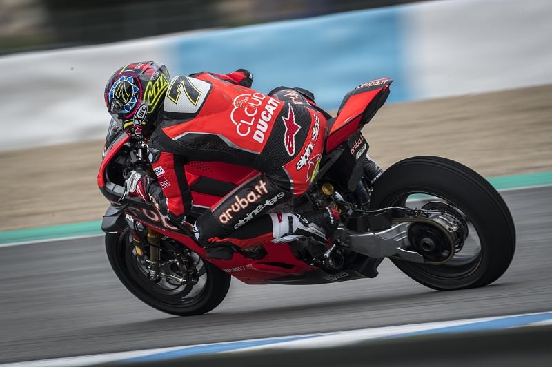 On positivait chez Ducati : « Après une première journée conditionnée par la pluie incessante qui a rendu les conditions de piste délicates, provoquant de nombreux accidents, lors du deuxième jour d’activité, Scott Redding et Chaz Davies ont réussi à boucler un bon nombre de tours – dans des conditions de piste presque sèche – en obtenant des données importantes pour améliorer le feeling avec leur Ducati Panigale V4 R. »