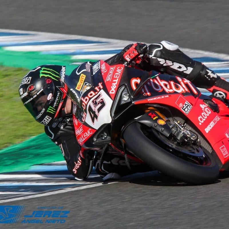 Chez Ducati, beaucoup étaient contents de l’arrivée de Scott Redding, dont Luigi Dall’Igna, le Directeur de la compétition, qui déclarait « c’est un pilote que j’aime et je suis très heureux de lui donner une moto dans un top team. » L’Anglais, Champion BSB 2019, avait réalisé le meilleur temps lors des tests d’Aragon, mais en ce premier jour à Jerez consacrait son énergie à choisir de bons réglages et des équipements efficaces. Il n’en était pas moins le pilote Ducati le plus rapide, avec une demi-seconde d’avance sur son coéquipier Chaz Davies.