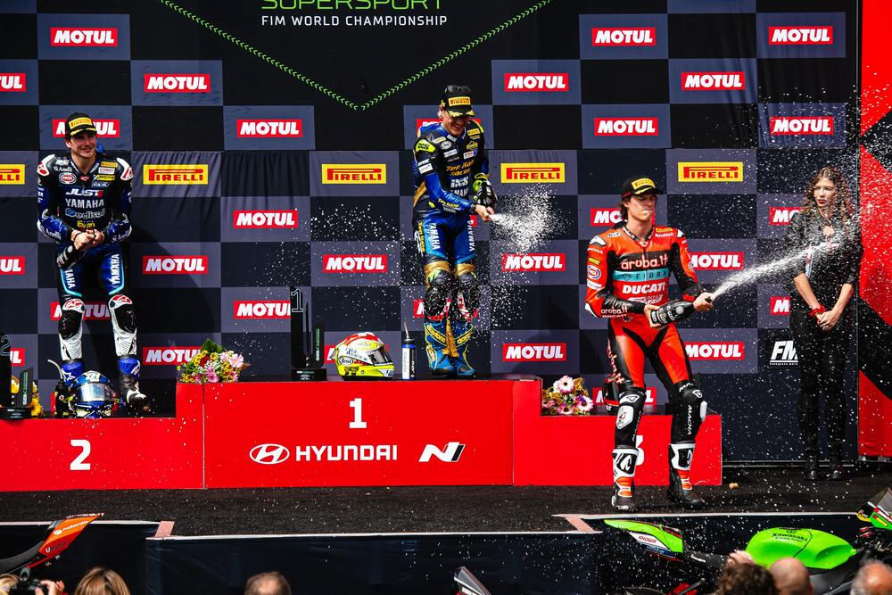 Le World Supersport à Misano a vu errer Valentino Rossi sur la piste alors que les pilotes s’alignaient pour la première course du seul week-end italien de cette année. Ducati a réalisé une belle performance en qualifications et espérait une victoire sous le chaud soleil italien. Et comme souvent dans cette catégorie, cela a été une course à rebondissements : Dominique Aegerter a remporté la victoire après que son rival Lorenzo Baldassarri ait été pénalisé pour une infraction aux limites de piste du dernier tour. Niccolo Bulega complète le podium, les trois hommes franchissent le drapeau à damiers dans un mouchoir de poche, puisque seulement 0.08 s séparent le leader du troisième !