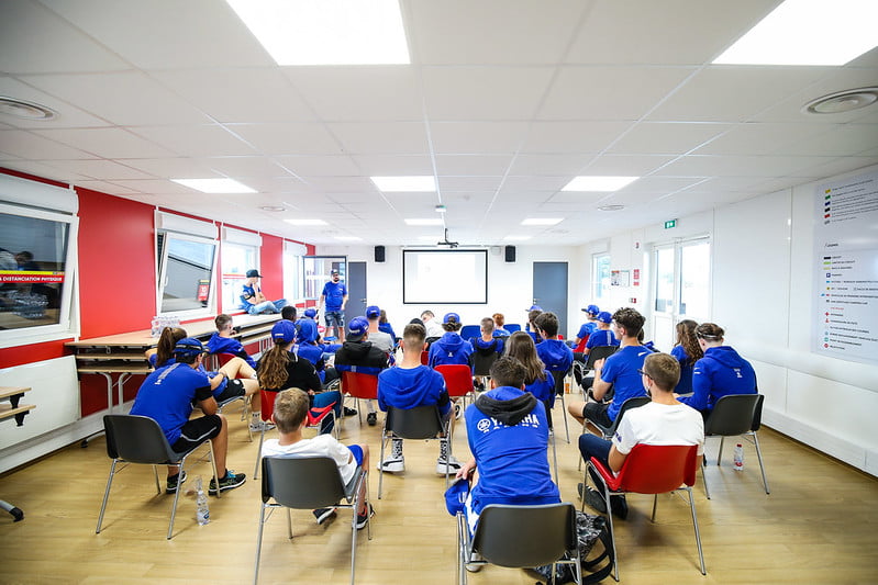 Quand on fait un camp comme le bLU cRU, ça veut dire qu’on a ici 30 jeunes Français qu’on a pu identifier, qui ont fait acte de candidature, et pour lesquels on a noté un package talent de pilotage–mental, motivation, implication et compréhension des enjeux de la course. Parce que la course est exigeante et le mental joue une part extrêmement importante. Dans la moto, on sait tous ce que le pilote est encore dominant, quelle que soit la discipline. Ici, on se donne la chance que dans toutes nos formules de promotion, toutes nos formules qui permettent d’accompagner les différents échelons, on tient aussi compte du mental, on arrive à détecter, et ça nous permet d’être sûr de ne pas rater un pilote. Peut-être que celui qu’on ne rate pas ici en France ne sera jamais champion du monde, mais au moins, à l’échelle des capacités et des potentiels qu’on a en France, nous en tant que constructeur on a l’impression d’avoir assumé notre engagement moral et d’avoir pu participer à ne pas en rater un et leur donner leur chance.