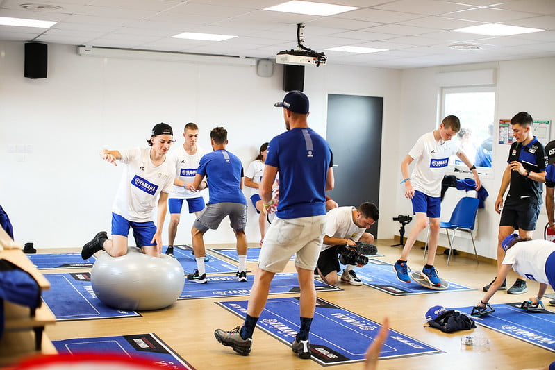 Clairement, l’idée ici, c’est que les meilleurs qui sont là sont en général aujourd’hui dans un niveau où ils devraient ensuite participer à nos challenges internationaux. Ça veut dire qu’au niveau motocross, on a un challenge bLU cRU 125 YZ qui fait que les meilleurs de tous les pays en Europe qui performent en 125 YZR, autour de 15–16 ans, sont invités chaque année sur une grande finale en ouverture du motocross des Nations. Ils roulent donc sur un grand circuit devant la presse et le vainqueur est systématiquement intégré dans un team international en championnat d’Europe, soit en 125, soit en 250. C’est nous qui payons et il intègre déjà une filière. On a un très bon exemple ici qui vient coacher, qui est Thibault Bénistant, qui a fait cela et qui a remporté le titre européen 125, le titre européen 250, qu’on a intégré dans notre team usine 250 pour sa première saison, et il a gagné sa première course dimanche dernier alors qu’il doit avoir 17 ou 18 ans. C’est un pur produit de cette filière là !