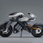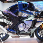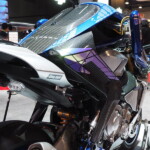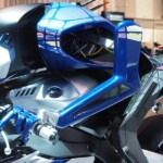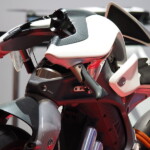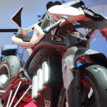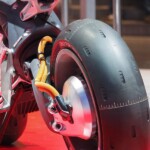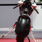 Motobot était exposé aux côtés de Motoroid, la moto sans pilote dotée d’une intelligence artificielle qui la rend incapable de tomber, déjà présentée à Tokyo par la firme d’Iwata.